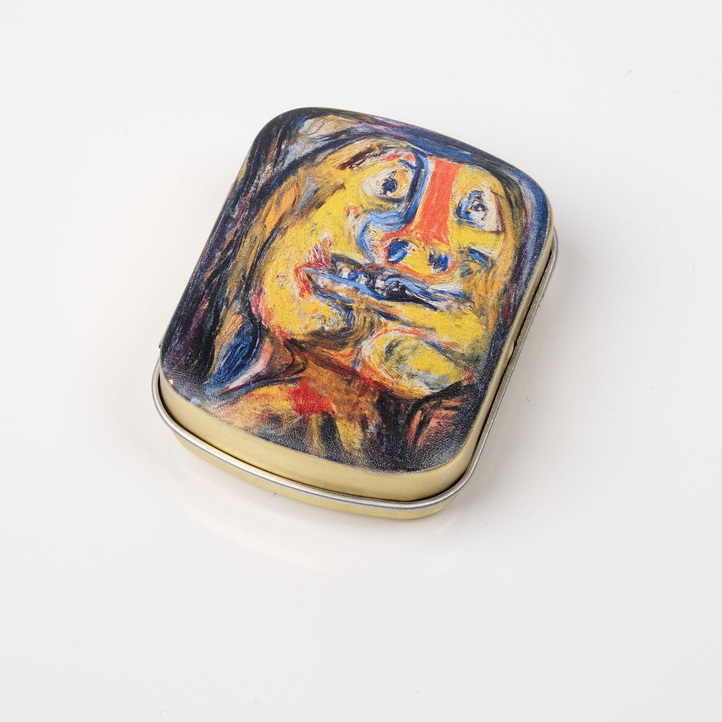 Mintæske med Asger Jorns maleri Le fou et l'oiseau bleu (Den gale og den blå fugl) fra 1954