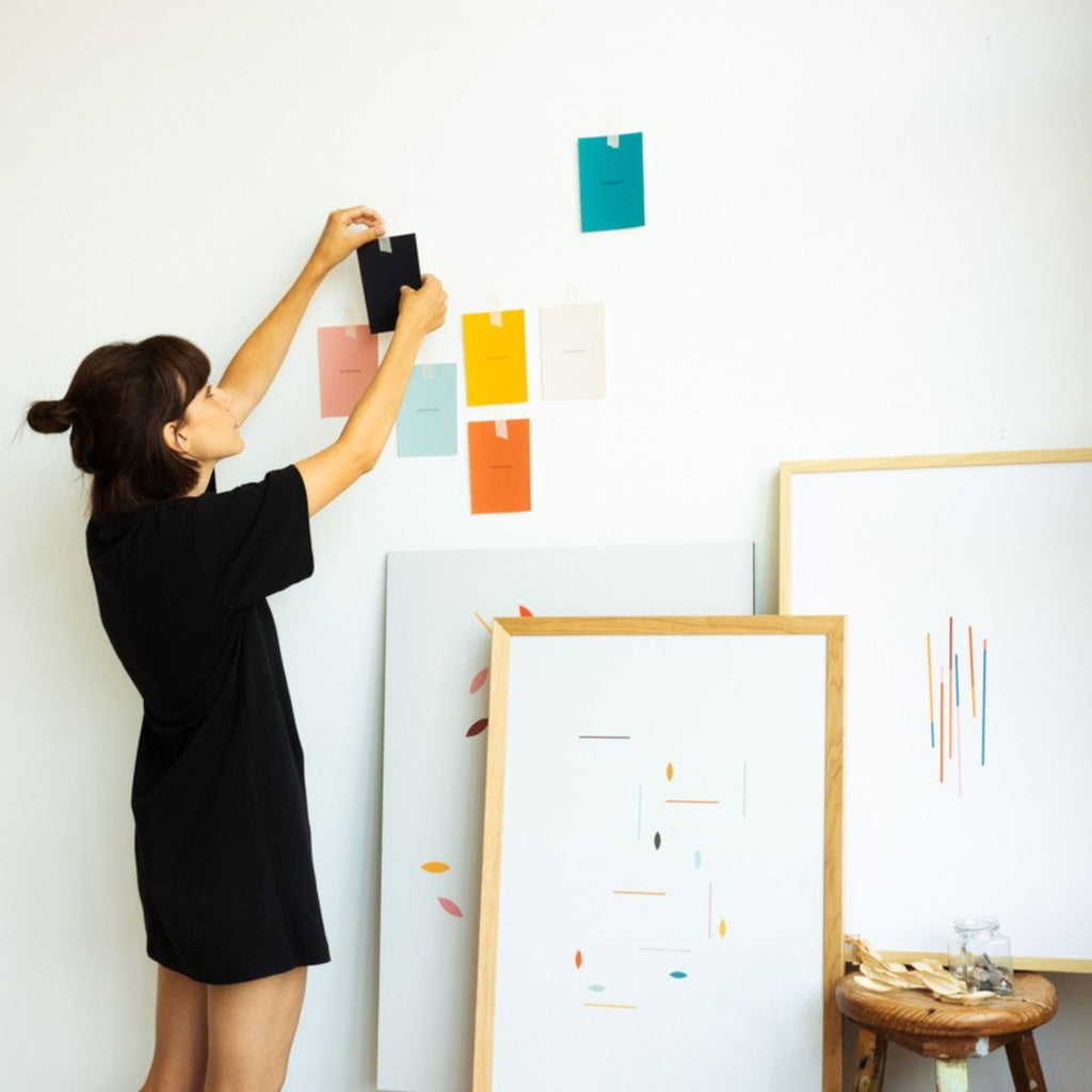 Design baseret på grafiske kompositioner af illustrator Mariadiamantes.